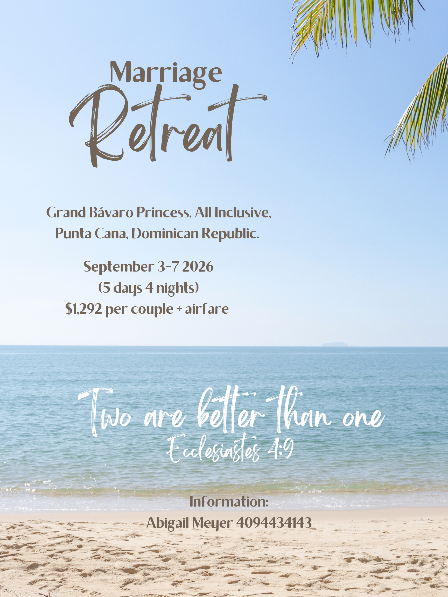 Our Marriage Conference is a time and place to be able to understand not only why marriage is beautiful in the eyes of the Lord, but also how to navigate its many challenges. In this conference, many topics will be discussed to help us understand as to what a fruitful marriage looks like in the Christian faith. Please contact Abigail Meyer at +1 409 443 4143 for more information